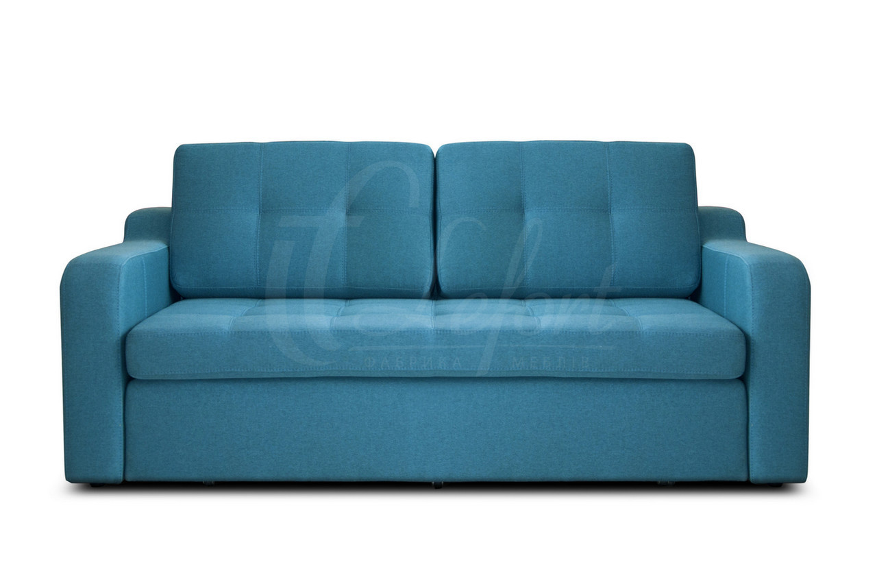 Порівняно невеликий диван для щоденного використання. Його зручні форми припускають комфортний відпочинок, у положенні сидячи, і щоденний повноцінний відпочинок під час сну.